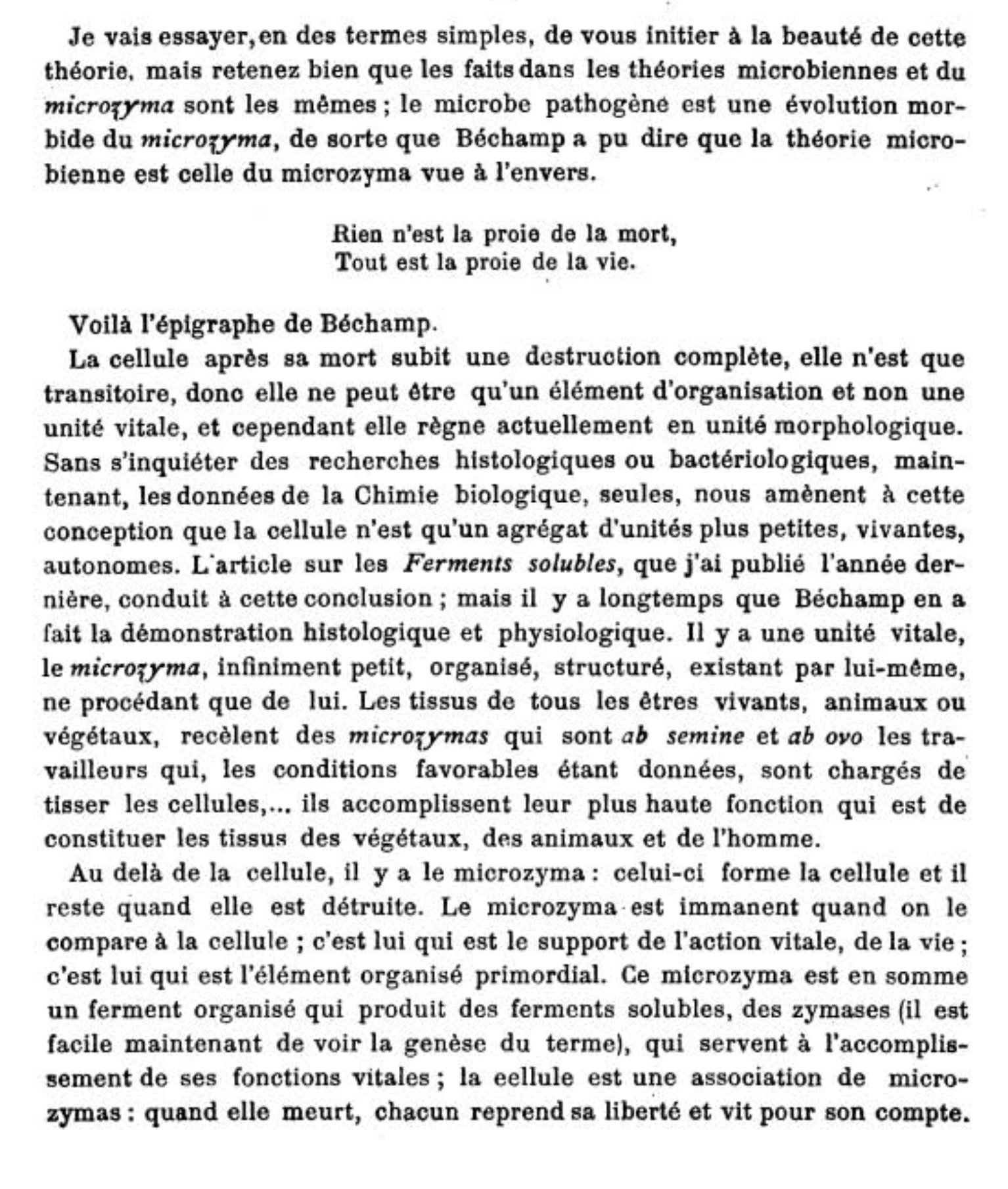 Les Microzymas sont la clé de